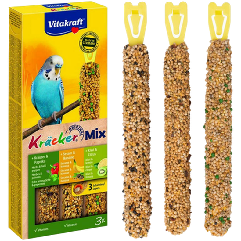 Sesam och banan: Spannmål, mineraler 2,3%, frön (sesamfrön 2%), vegetabiliska biprodukter, frukt (torkad banan 0,96%), oljor och fetter, honung, socker, alger, örter och paprika: spannmål, mineraler, vegetabiliska biprodukter, grönsaker(torkad paprika), torkad timjan 0,57%, honung, torkad basilika 0,14%, alger, kiwi och citrusfrukter:, spannmål, mineraler, vegetabiliska biprodukter, frukt (torkad citron 1%, torkad kiwi 0,1%), honung, oljor och fetter, alger