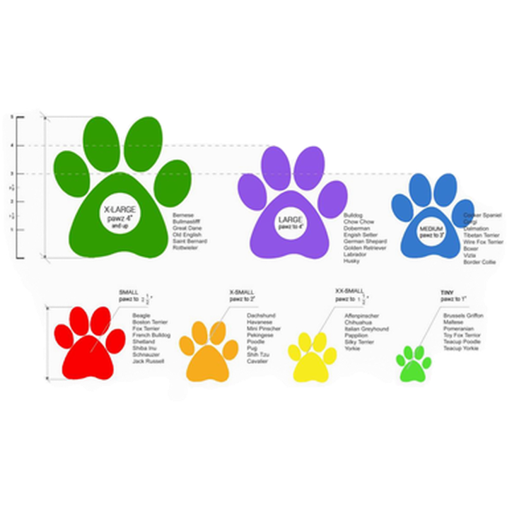 För bästa möjliga passform, mät tassen från botten av den stora hälkudden till spetsen på den längsta klo.