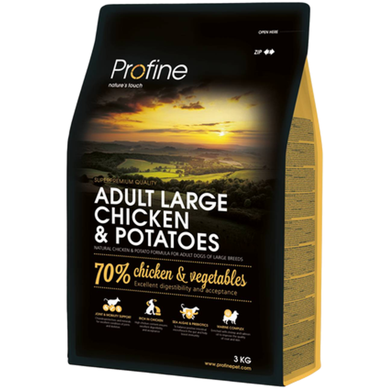 kyckling 40 % (torkad kyckling 22 %, kycklingmjöl 18 %), potatis (22 %), majs, torkade äpplen, kycklingfett (konserverad tokoferolblandning, källa till vitamin E) (6 %), bryggjäst, hydrolyserad kycklinglever (2 %), räkor (1,5 %), laxolja (1 %), havsalger (0,5 %), glukosaminsulfat (0,02 %), cikoriarot (källa till mannan-oligosackarider 0,018 %), örtblandning (fänkål, basilika, salvia 0,018 %), fruktoligosackarider (0,012 %), extrakt av yucca schidigera (0,01 %), kondroitinsulfat (0,012 %).