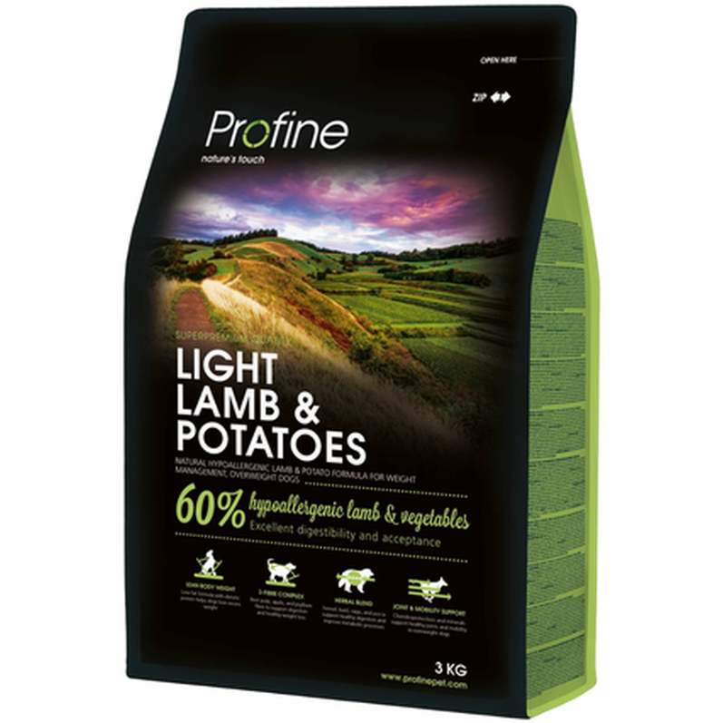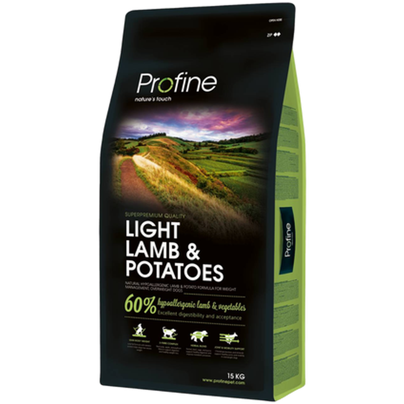 Profine Dog Adult Light Lamb & Potatoes - Komplett torrfoder med lamm & potatis för vuxna hundar av alla raser med övervikt, för att behålla vikten eller som är i behov av viktkotroll. HÖGT PROTEIN OCH ENERGI: Högt kycklingprotein- och fettinnehåll ger energi för utökad energiproduktion. LED- & RÖRLIGHETSSTÖD: Kondroskyddsmedel och mineraler stödjer friska leder och rörlighet hos högpresterande hundar. SJÖALGER & PREBIOTIKA: För att balansera positiv tarmmikroflora i tarmen och hjälpa till att stärka immuniteten. MARINKOMPLEX: Berikad med räkor och laxolja för att förbättra kvaliteten på päls och hud.
