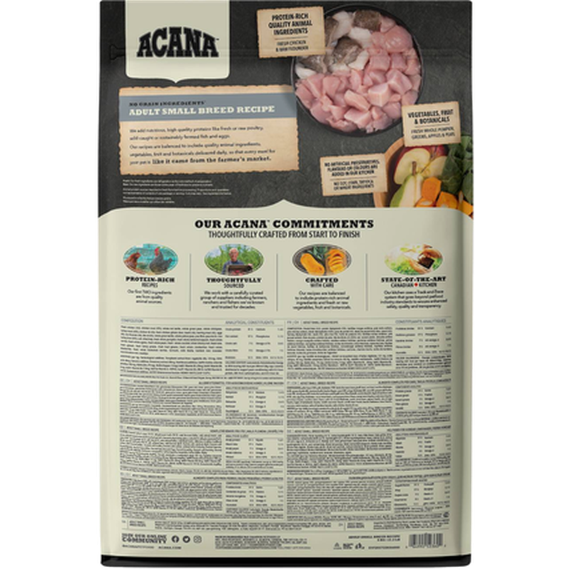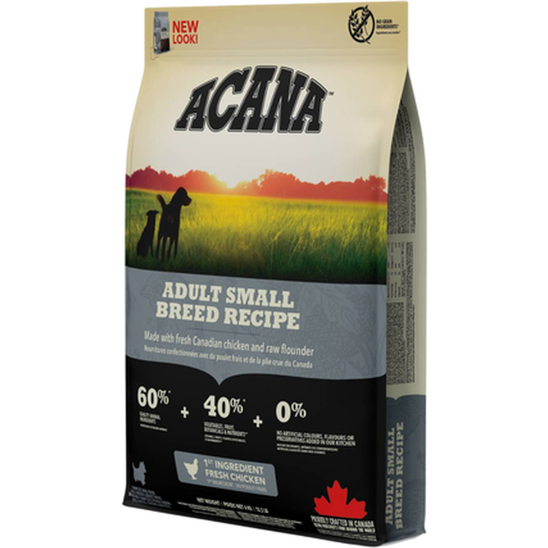 Färsk kyckling (14 %), torkat kycklingkött (14 %), hela röda linser, hela gröna ärtor, hela kikärtor, torkat kalkonkött (6,5 %), kycklingfett (6 %), färska kycklinginälvor (lever, hjärta) (4 %), färska ägg (4 %), rå kummel (4 %), fiskolja (4 %), torkad sill (3 %), hela gröna linser, hela gula ärtor, kikärtsfiber, ärtstärkelse, rå kalkonlever (0,5 %), salt, torkad kelp, färsk hel pumpa, färsk hel butternutsquash, färska hela morötter, färska hela äpplen, färska hela päron, färsk hel zucchini, torkad cikoriarot, färsk grönkål, färsk spenat, färska majroveblad, färska rödbetsblad, hela tranbär, hela blåbär, hela saskatoonbär, gurkmeja, mjölktistel, kardborrerot, lavendel, läkemalva, nypon.