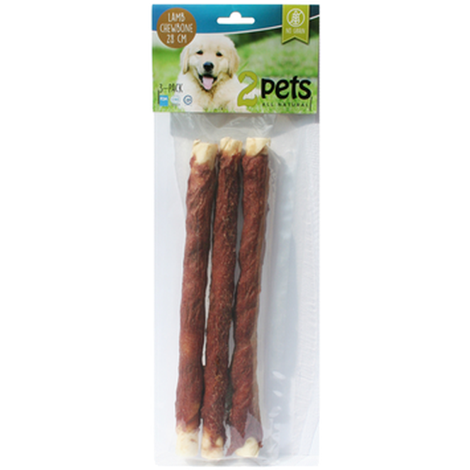 Lammköttinlindad tuggpinne - hundtugg. Smaskigt tuggben med härligt smaklig kycklingfilé lindat runt ett tåligt råhudsben. Råhud ger tuggmotstånd medan torkat kycklingkött lockar hunden att tugga, även hundar som normalt inte föredrar råhudstugg. 2pets Dogsnack Lamb Chewbone