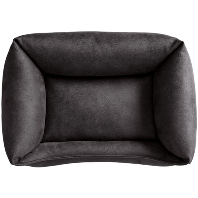 Stoppad med mjuk polyesterfyllning och med en upphöjd kant som inbjuder hunden att krypa ihop och vila.