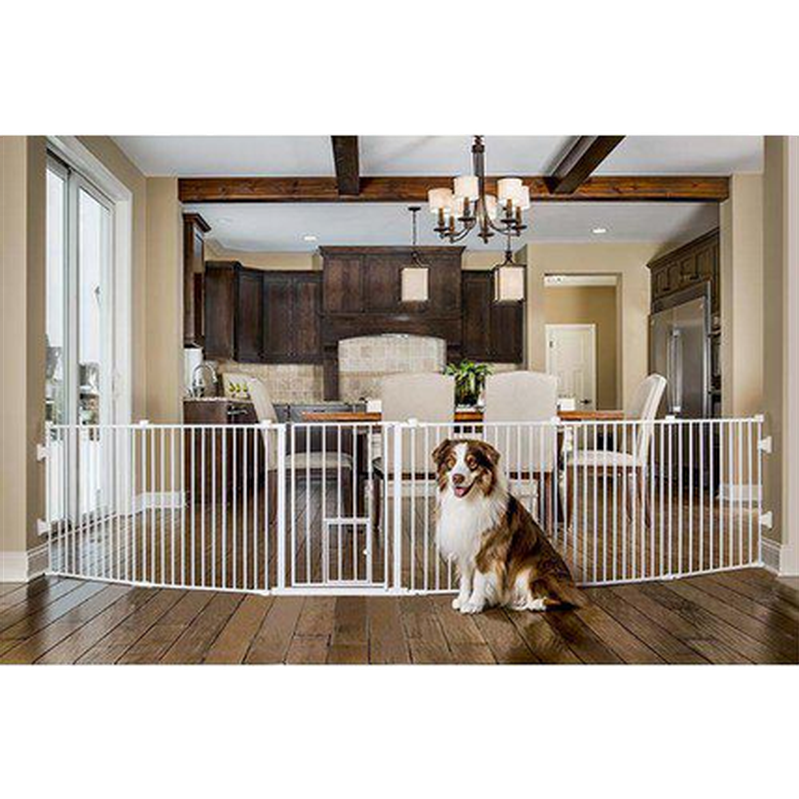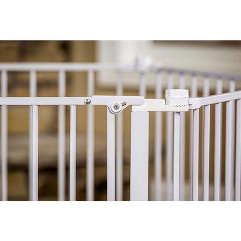 Vikbar hage & grind i ett som är perfekt när du ska gränsa av en stor dörröppning. Hagen / hundgrinden är gjord av robust, stål för hållbarhet & tål tuggande valpar. Convertible Pet Yard and Pet Gate valphage & hundgrind från Carlson är utmärkt som barngrind.