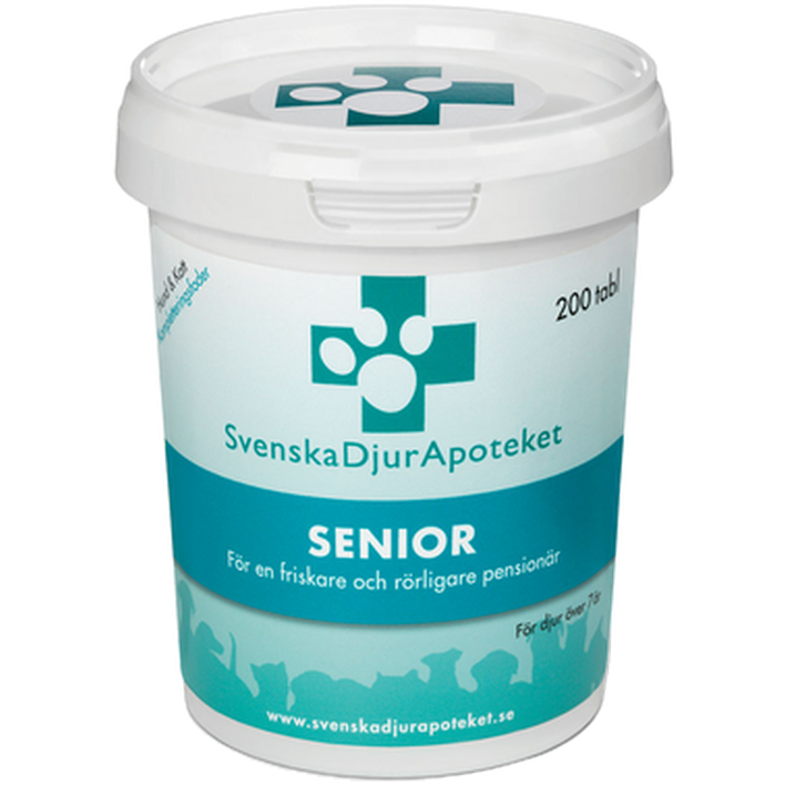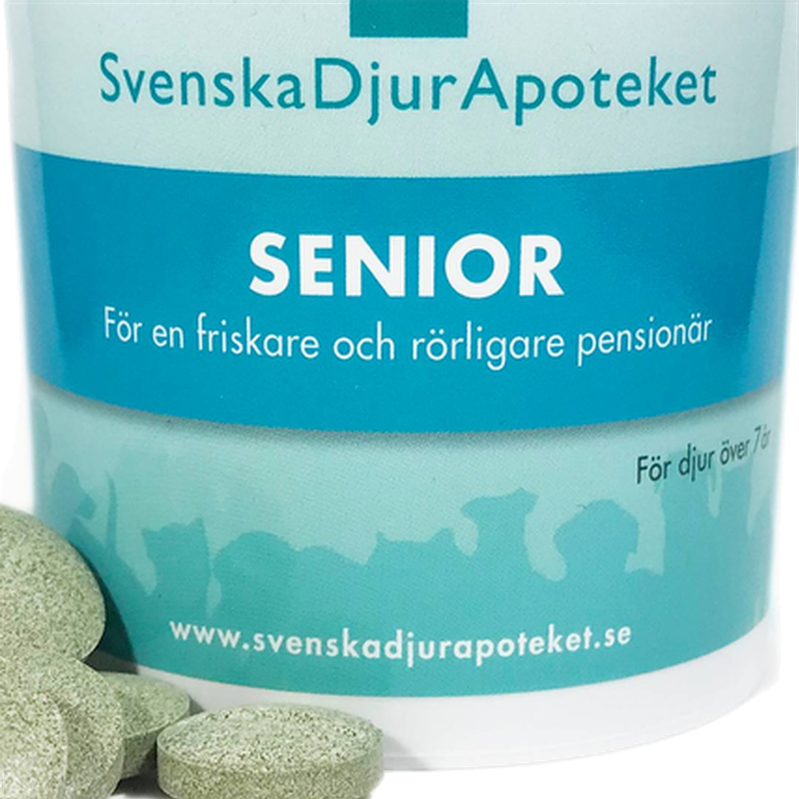 Svenska DjurApoteket Senior tabletter bidrar till hundens hälsa & välmående, samt stärker immunförsvaret hos katten & hunden. Verkar smärtlindrande, antiinflammatoriskt & ger en mer välmående hund. Svenska DjurApotekets Senior är vitaminer specialanpassade för äldre djur.