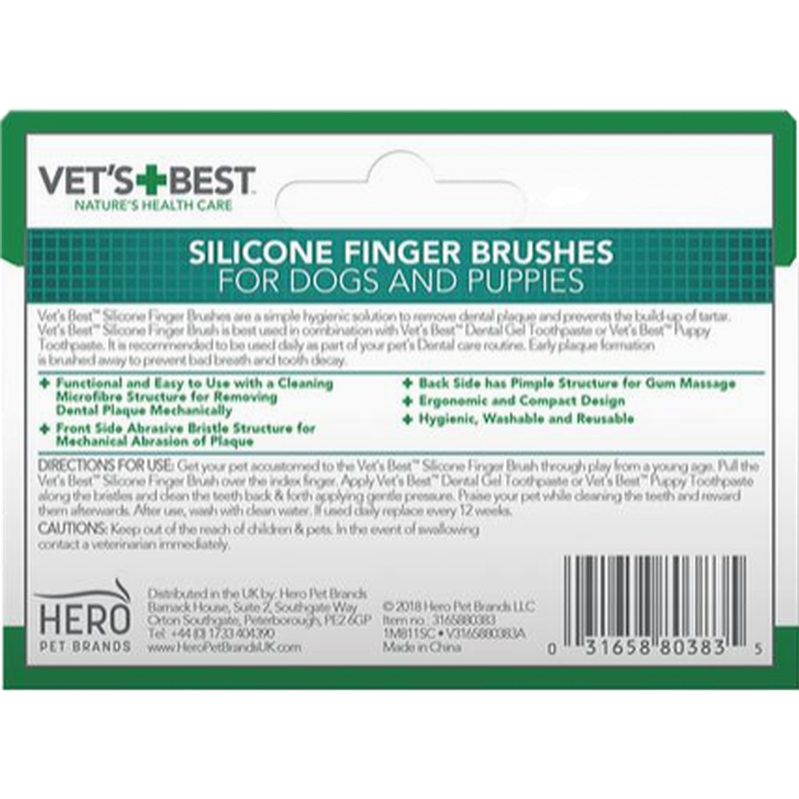 Smidig tandvård för hund & katt! Vet’s Best hundtandborstar i silikon tar effektivt bort plack och hjälper till att motverka tandsjukdomar & tandlossning. Fingertandborste som gör att du enkelt kommer åt hundens eller kattens alla tänder. Använd tillsammans med hundtandkräm, tex Virbac Enzymtandkräm eller en tandkräm med biffsmak från Trixie. Ta hand om din hunds eller katts tänder dagligen & kombinera gärna tandvården med dentalpinnar för hund eller KloPak för katter. Vets Best Silicone Finger Brushes for Dogs & Puppies