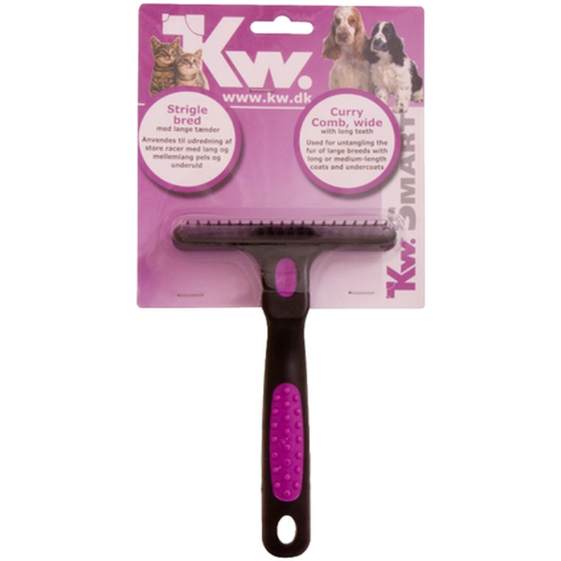 Utredningskam & underullskarda. KW danskt Smart Curry Comb Wide. Reder ut pälsen på raser med lång eller medellång päls & underull, tar effektivt bort lös underull utan att skada stickelhåren & huden. Kammen tar också bort tovor & luftar huden & pälsen.