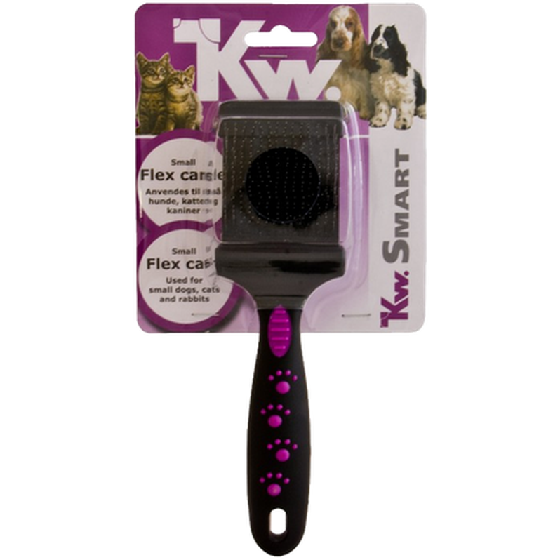 Flexikarda för pälsutredning & tovor till hårömma hundar & katter. KW danskt Smart Flex Dubbelsidig flexibel karda med korta stålstrån. Ena sidan är mjuk & den andra är hård. Speciellt framtagen för reda ut trasslig & tovig päls. Enkel & bekväm borstning.