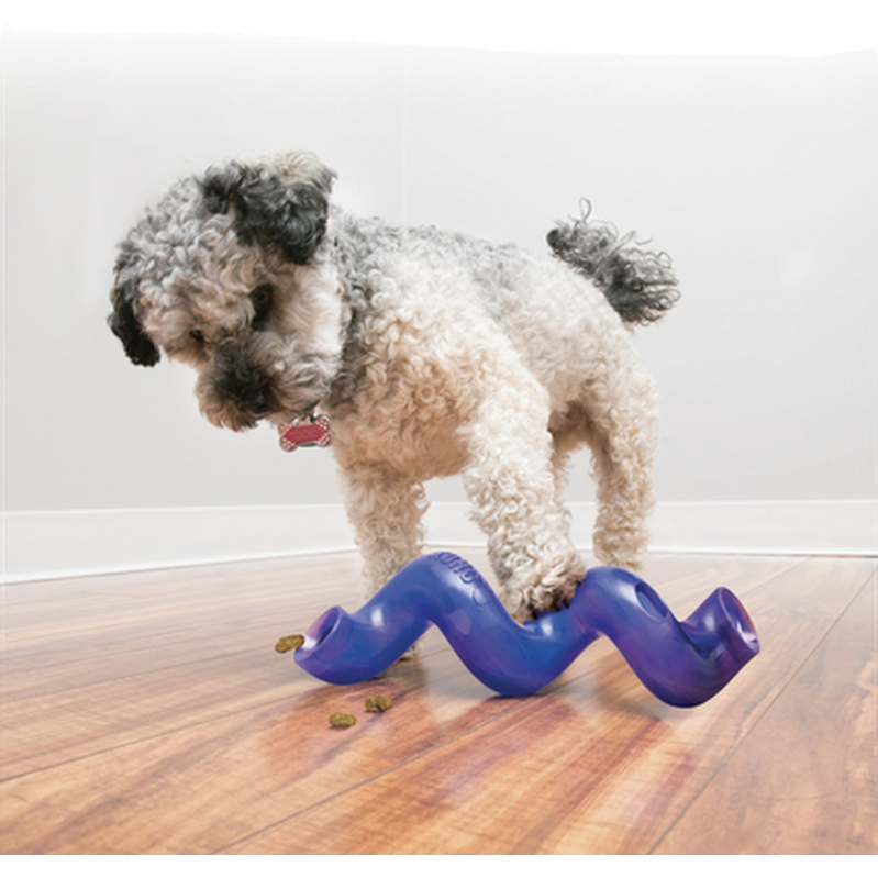 Godisgömma - KONG Treat Spirals unika form fängslar en hunds naturliga fodersökande. Tillverkad av hållbara material ger denna godisdispenser mental och fysisk stimulans som förlänger hundens lekstunder. Den oförutsägbara rörelsen kommer säkerligen att hålla hundarna engagerade i hälsosam, aktiv lek. Perfekt aktiveringsleksak för hundgodis eller som foderaktivitet. Kong Treat Spiral Stick Dog Toy