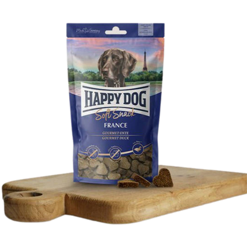 Skäm bort din pälskling med godis från Happy Dog! Happy Dog's godis vann 2020 pris för årets bästa hundgodis. Mjuka, hjärtformade godisbitar som passar utmärkt som mellanmål eller belöning. Delikat anka med glutenfri potatis är en smakupplevelse för gourmanden. Singel-protein & tillverkat av de bästa råvarorna. Happy Dog Soft Snack France