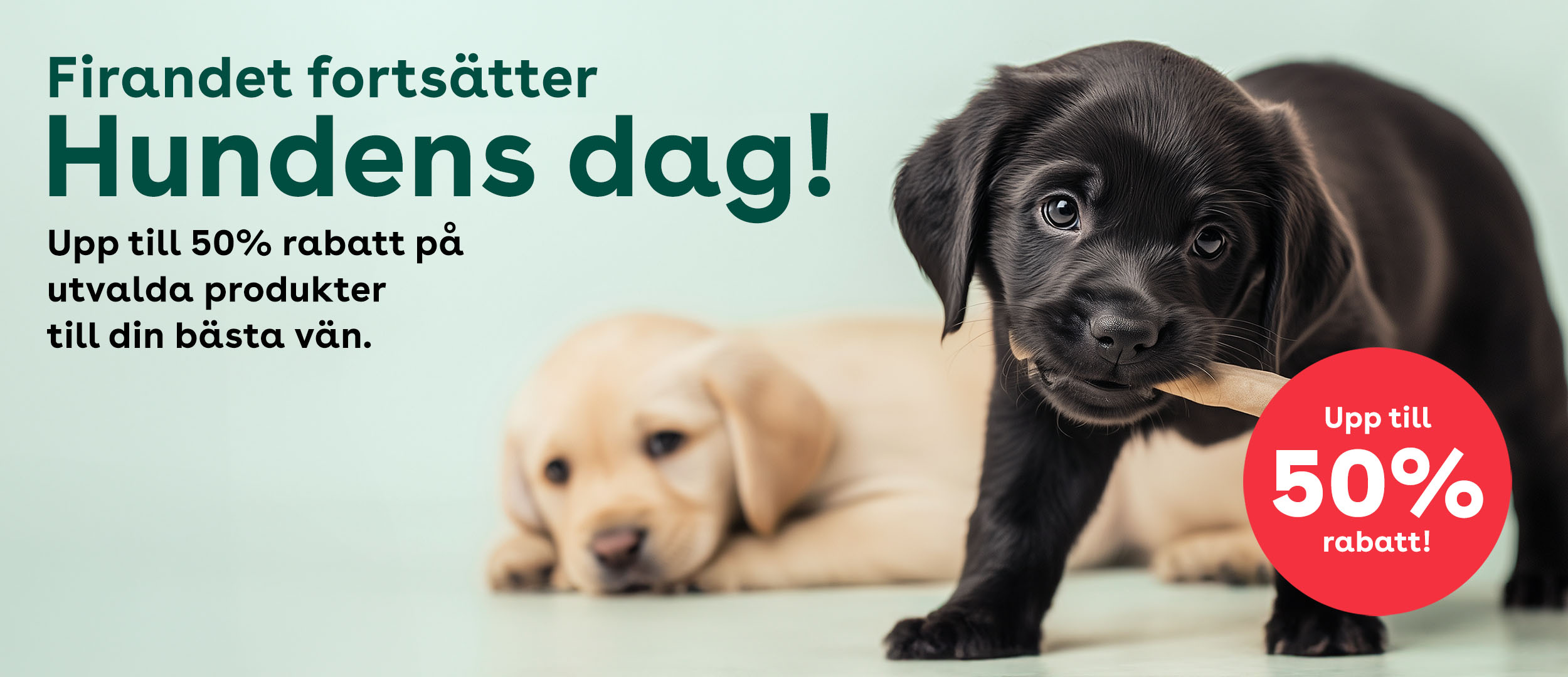 Firandet fortsätter hela veckan! Fira alla fantastiska hundar tillsammans med oss och ge din vovve den kärlek den förtjänar med upp till 50% rabatt på tusentals varor! ❤