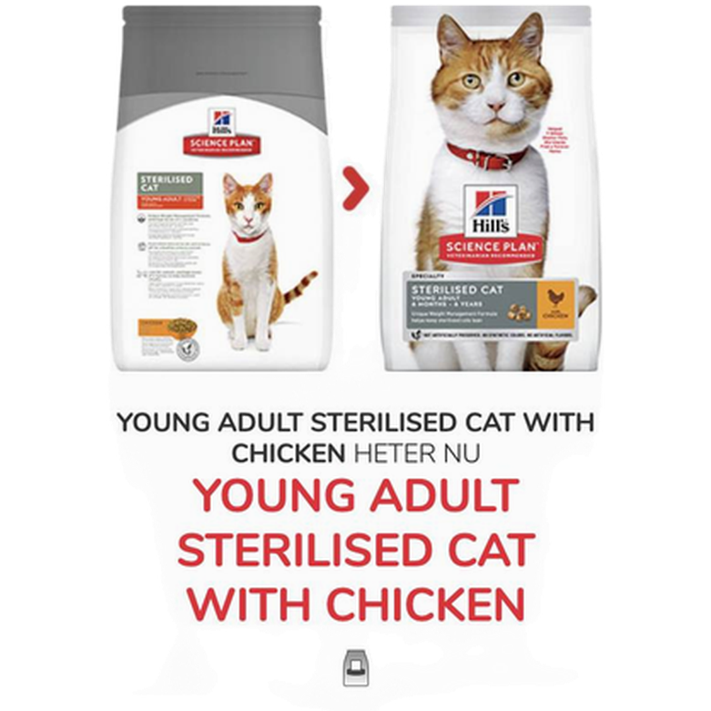 Hills torrfoder med kyckling för steriliserade eller kastrerade unga katter & kattungar. Fodret passar katter mellan 1 år till 6 års ålder. Kattens ämnesomsättning förändras efter en kastration, vilket gör att kastrater löper tre gånger större risk för övervikt. En kontrollerad mineralrikt främjar friska urinvägar. Fodret har en lägre fetthalt & ett högt innehåll av L-lysin som kan hjälpa katten att hålla sig smal & aktiv. Kattmat för steriliserade katter av högsta kvalitet. Utan konserveringsmedel, färg & smakämnen. Hills Science Plan Cat Adult Sterilised Chicken - Dry Cat Food