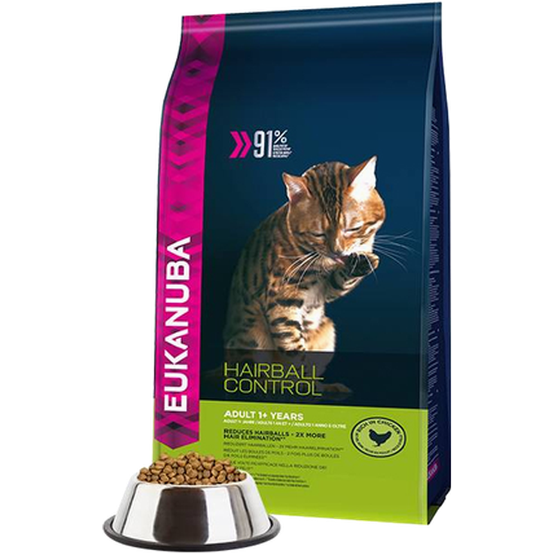Kattmat som förebygger hårbollar. Superkvalitet med hög kötthalt. Eukanuba Cat Adult Hairball Control kattfoder är ett helfoder som innehåller allt din katt behöver. Eukanuba kattfoder innehåller inga konstgjorda smakämnen, färgämnen eller konserveringsme