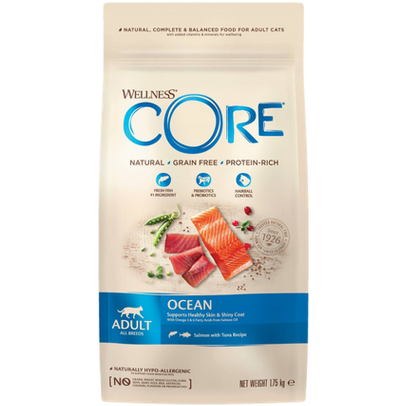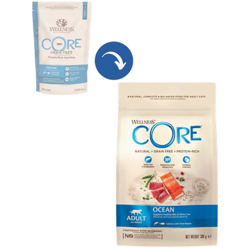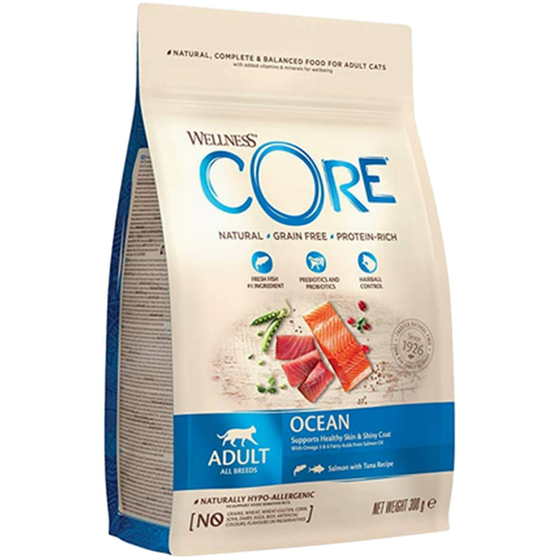 Lax & Tonfisk, torrfoder - Wellness Core spannmålsfritt kattfoder med lax & tonfisk för vuxna katter. Kompletta & balanserade måltider med torrmat som naturligt levererar det protein & den smak som ditt rovdjur kräver. Wellness CORE Cat Adult Ocean Grain Free Salmon & Tuna.