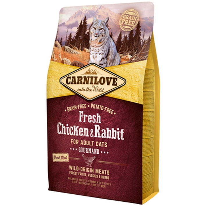 Färskt kyckling (42 %), torkad kanin (22 %), torkad anka 6 %), proteinfritt kycklingfett (med tokoferoler som konserveringsmedel, 5%), pumpa, kikärter, ärter, hydrolyserad kycklinglever (3 %), proteinfri laxolja (2 %), äpplen, morötter, linfrö, hydrolyserade kräftdjursskal (en källa till glukosamin, 0,026%), broskextrakt (en källa till kondroitin, 0,016%), bryggerijäst (en källa till mannanoligosackarider, 0,015 %), cikoriarot (en källa till fruktooligosackarider, 0,012%), Yucca schidigera (0,01 %), alger (0,01 %), psylliumfrö (0,01 %), timjan (0,01 %), rosmarin (0,01 %), oregano (0,01 %), tranbär (0,0008 %), blåbär (0,0008 %), havtorn (0,0008 %), ingefärsrot (0,0008 %), salvia (0,0008 %).