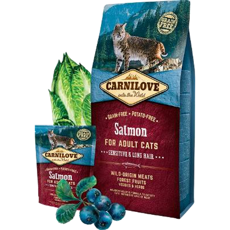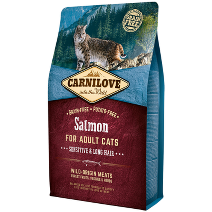 Laxmjöl (30 %), gula ärter (17 %), Hydrolyserad lax (16 %), sillmjöl (14 %), kycklingfett (med tokoferoler som konserveringsmedel, 9 %), kycklinglever (3 %), laxolja (3 %), tapiokastärkelse (2 %), äpplen (2 %), morötter (1 %), linfrö (1 %), kikärter (1 %), hydrolyserade kräftdjursskal (en källa till glukosamin, 0,026 %), broskextrakt (en källa till kondroitin, 0,016 %), bryggerijäst (en källa till mannanoligosackarider, 0,016 %), cikoriarot (en källa till fruktooligosackarider, 0,012 %), yucca schidigera (0,01 %), alger (0,01 %), psylliumfrö (0,01 %), timjan (0,01 %), rosmarin (0,01 %), oregano (0,01 %), tranbär (0,0008 %), blåbär (0,0008 %), hallon (0,0008 %).