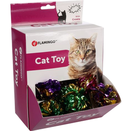 Rolig prasselboll som kommer uppmuntra din katt till naturlig jaktlek. Bollen aktiverar katten till en lek där katten kan boxa, fånga & jaga bollen. Rolig för busiga kattungar & för äldre leksugna katter. Flamingo Cat Toy Caja Crinkle Ball