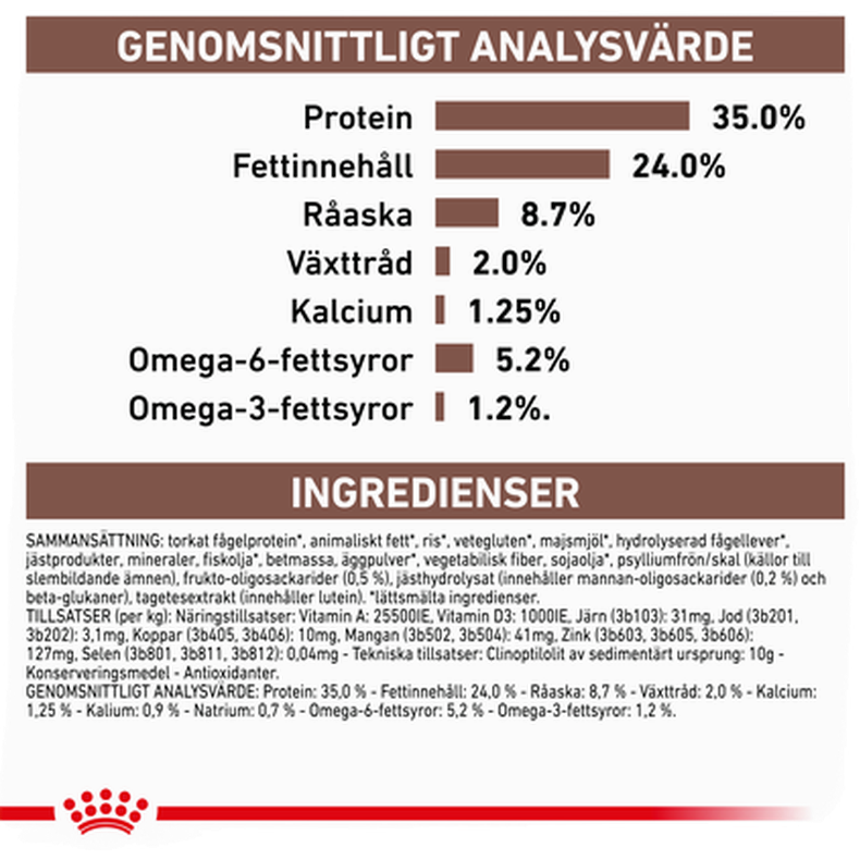 • Vi rekommenderar dig att söka veterinärrådgivning minst var 6:e månad för att säkerställa att hälsotillståndet upprätthålls på bästa möjliga sätt vid fortsatt utfodring med detta foder.