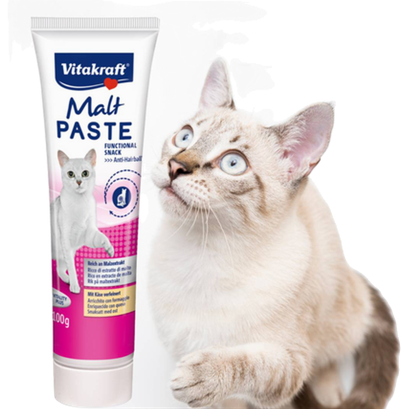 Vitakraft maltpasta med ostsmak för katter. Riktigt god pasta med ostsmak mot hårbollar. Kattmalten hjälper mot hårbollar & matsmältningsproblem! En tarmreglerande produkt. Vitakraft Maltpasta främjar naturlig eliminering av päls. Även för kräsen katt med smak av utsökt ost.