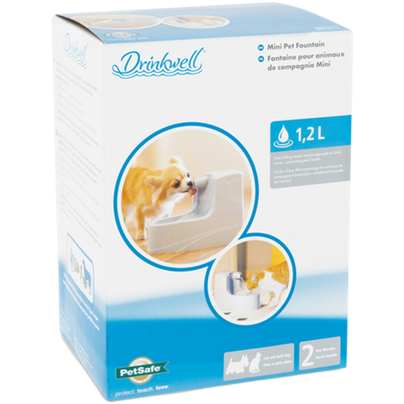 Drinkwellfontän Hund-, & kattfontän - Drinkwell mini Vattenfontän har en fritt fallande vattenstråle, vilket lockar katterna & hundarna att dricka mer samt hjälper till att förebygga njurproblem urinstenar & urinvägssjukdomar. Vattenfontän rymmer 1,2 liter. Drinkwell® Mini Pet Fountain