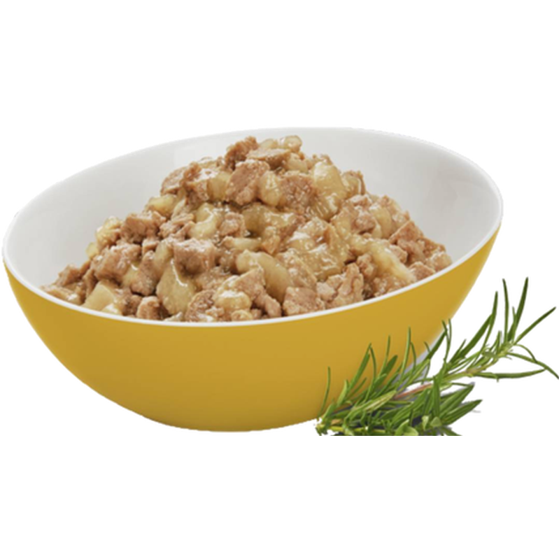 Kyckling: kött och animaliska biprodukter (50% varav 5% kyckling), vegetabiliska biprodukter, mineraler, inulin. Kalkon: Kött och animaliska biprodukter (50% varav 5% kalkon) vegetabiliska biprodukter, inulin, mineraler. Biff: Kött och animaliska biprodukter (50% varav 5% nötkött) vegetabiliska biprodukter, inulin, mineraler. Lax: kött och animaliska biprodukter (45 %) fisk och fiskbiprodukter (5 % lax), vegetabiliska biprodukter, inulin, mineraler