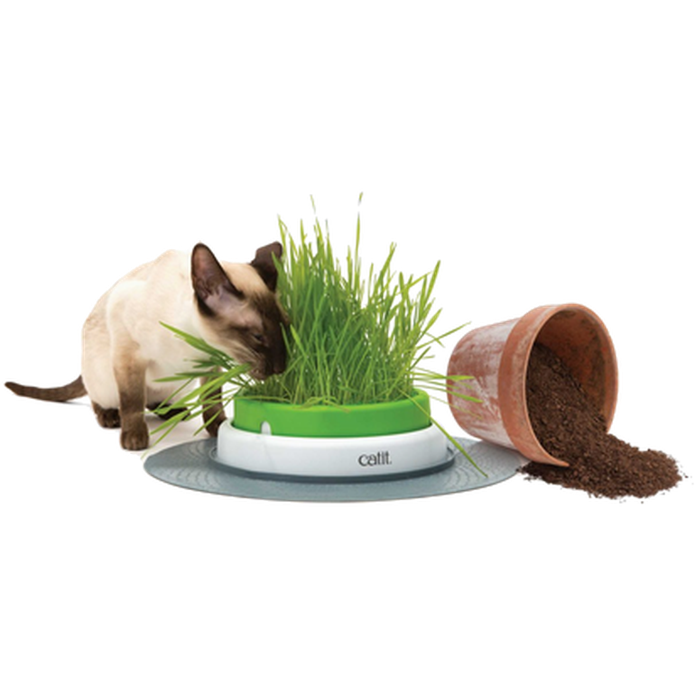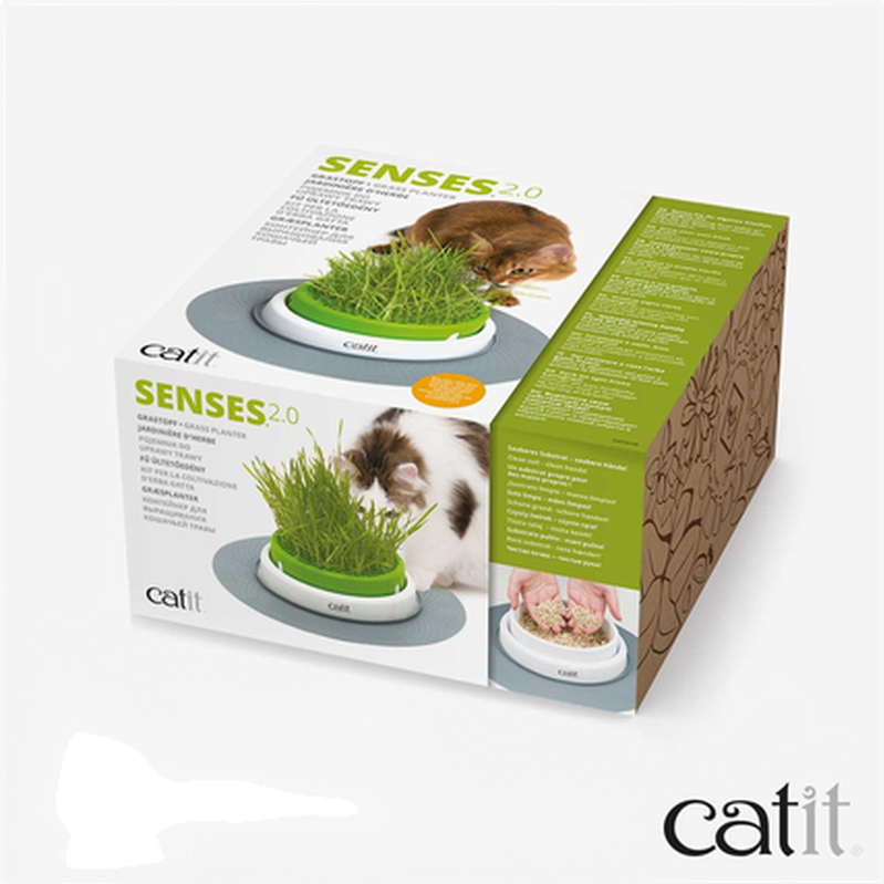 Senses 2.0 Grass Planter för kattgräs. Låg & stabil design med speciellt täcklock för att förhindra katten att tippa, välta & gräva. För användning med Catit Cat Grass Kit. Kattgräs stimulerar kattens matsmältning & hjälper till att förhindra hårbollsuppbyggnad. Hälsosamt alternativ till krukväxter, som ofta är giftiga. Tillverkad av BPA-fria material.