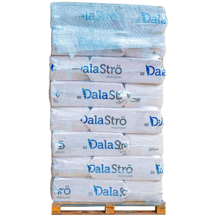 Pressade Spånbalar från Dalarna - Dammavskild svenskt kutterspån med bra uppsugningsförmåga. Nu finns en spånbal som kan hanteras utan att riskera ryggskott! Den nya smidiga balen väger 16 kg. Hel pall innehåller 24 st, höjd ca 220 cm. Spånet är dammfritt och av bästa kvalitet. Dalaströ kutterspån bal 16 kg 80 x 40 x 30 cm (200-230 l)