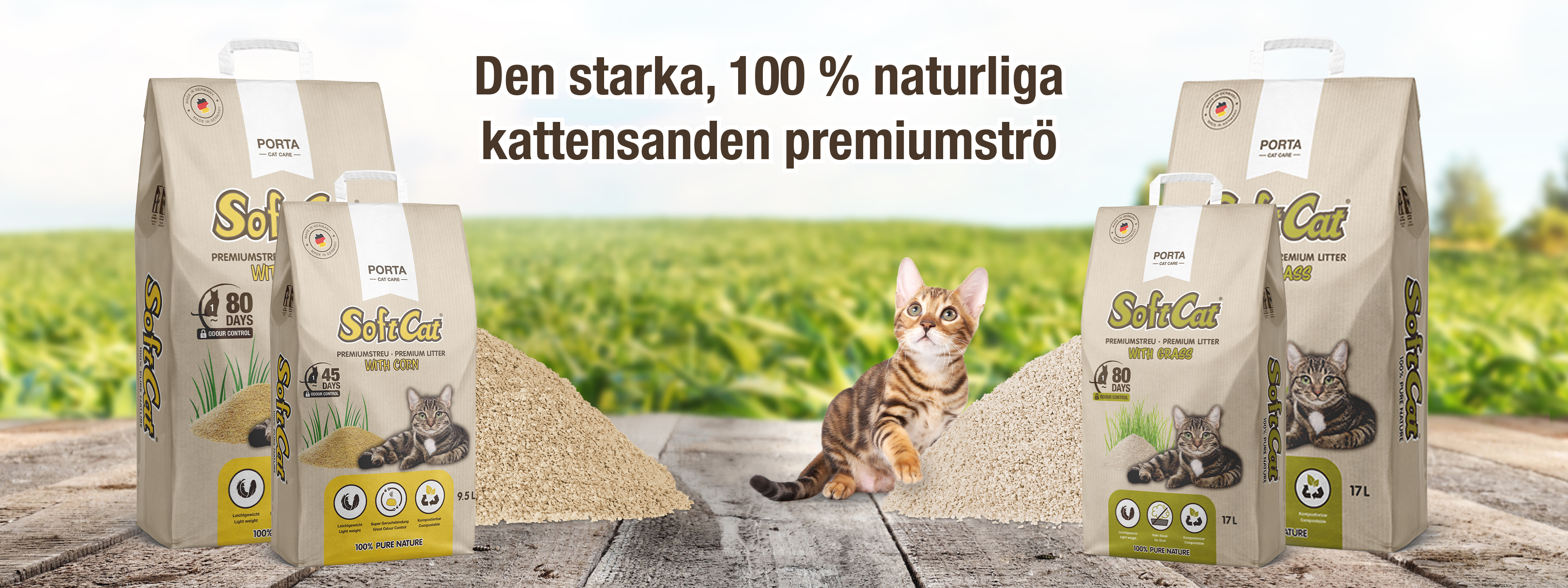 SoftCat från Schulze erbjuder en biologiskt nedbrytbar naturvänlig kattsand med utmärkt klumpbildande- och absorberingsförmåga och odörkontroll för en billig peng. Den populära klumpande kattsanden med neutral doft passar alla katter, kattunge, vuxen eller senior katt och tillverkad av snabbväxande förnybara växter. SoftCat kattströ är dammfri och har effektiv klumpbildning och är därför perfekt för känsliga katter eller hushåll med allergi. Ett bra val för dig, din katt, plånboken och naturen!